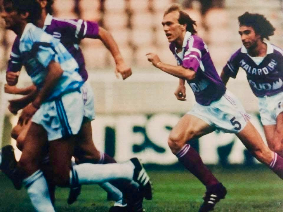 Le TFC termine 10ieme cette saison là. On a toujours l'équipementier ADIDAS. Pour illustrer cette saison 1988 1989 je propose sept jolis maillots ainsi qu'une somptueuse veste de survêtement. J'ai donc 7 maillots : 6 maillots de matchs et un maillot d’échauffement d'avant match. Ainsi je détiens un maillot de Pascal Despeyroux (numéro 6) porté en championnat, j'ai la chance de compter dans ma collection un magnifique maillot porté par Omar Da Fonseca (numéro 9) et je possède le maillot porté par Eric Assadourian (numéro 16) lors du match OM TFC du 10 12 1988, Eric entre en jeu au Vélodrome en toute fin de match pour remplacer Gerald Passi. En outre, J'ai l'immense joie de posséder trois maillots de coupe de France. J'ai le maillot des 32ieme de finale qui verra le TFC affronter Vallauris le 26/02/1989 le TFC gagnera à Vallauris 3 à 1 avec un Beto décisif sur le 3ieme but du TFC, ainsi les violets ont leur billet pour les 16ieme et cela se jouera contre Nice. Ce maillot porte le numero 4, il a été porté soit par Jean Luc Ruty soit par Khidyiatullin. J'ai le maillot de Beto Marcico (numéro 8) porté en 16ieme de finale lors du match NICE TFC. Ce maillot est rarissime car c'est un modèle unique. En effet on peut voir que le sponsor LOTO est encadré et surtout "sportif" est écrit en italique. Le TFC perdra à Nice (2 à 0). Mon troisième maillot de CDF est un maillot de Gérald Passi porté au match retour lors de cette double confrontation face aux Aiglons (numéro 10). Avec le nouveau visuel sponsor Loto Sportif on perd le match retour 1 à 2 et c'est donc la fin de l'aventure en CDF dés les 16iéme.... C'est un bonheur incommensurable que de détenir des maillots de ces stars de l'époque. Pascal Despeyroux, milieu défensif, est Toulousain il est resté au club de 1972 à 1992 (il a débuté à l'âge de 7 ans alors que le club s'appelait l'UST) avec le TFC c'est 221 matchs en professionnel pour 11 buts. Gerald Passi est aussi un enfant d’Occitanie puisqu'il est Albigeois il jouera au TFC de 1985 à 1990 soit 165 matchs et 43 buts. Avoir aussi un maillot de la légende Beto Marcico porté en coupe de France c'est aussi magique. Le maillot d’échauffement est somptueux avec cette magnifique fleur Adidas dans le dos. La saison 1988 1989 c'est l'arrivée d'un nouveau sponsor : Pédi Relax en témoigne aussi la veste de survêtement qui est celle de Jacky Paillard (milieu défensif) qui a joué au TFC entre 1987 et 1990 dans un premier temps puis de 1994 à 1996 dans un second temps. Au total Jacky Paillard a joué 146 matchs avec le TFC et marqué 11 buts en violet. De même, le superbe coupe vent et le short floqué 14 ont appartenu à Jacky Paillard. Vous l'aurez compris 3 pièces sur la même page ayant appartenues à Jacky Paillard ne sont pas le fruit du hasard...Il y a sur ce site, d'autres affaires portées par Jacky lors de ses différentes saisons Toulousaines à découvrir (1987/1988 mais aussi 89/90 et 94/95). Oui, je connais un peu Jacky Paillard et c'est l'occasion pour moi de le remercier pour sa confiance et pour le temps qu'il m'a accordé à plusieurs reprises pour évoquer son passé en violet ! Merci Jacky !!! Enfin je poste un billet de match à savoir le billet du 1er match de la saison 88 89 MATRA RACING de PARIS contre TFC qui verra les violets remporter ce match 1 à 0.