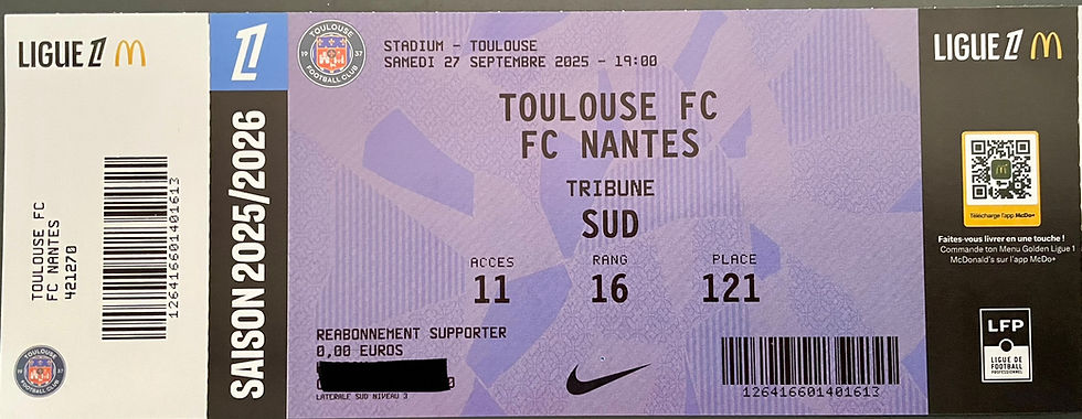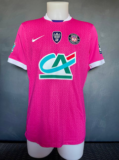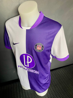 Nous perdons contre le cours du jeu à AUXERRE, faisons un nul injuste face à Nantes, gagnons facilement contre Metz et nous perdons à Monaco en multipliant les erreurs techniques. Lors de ce match à Monaco le 25/10/2025 si la qualité du jeu fut déplorable de la part des deux équipes. Notre TFC se présenta sur le rectangle vert de Louis II avec un maillot atypique et unique : tout violet ! En effet la ligue a refusé nos deux maillots car ils pouvaient être confondus avec celui de l'ASM, aussi dans l'urgence le TFC a demandé à NIKE un maillot violet qui fut floqué pour la circonstance. Cela donne un maillot fort réussi qui a fait le buzz. J'ai la chance de pouvoir présenter ici celui porté par Yann Gboho. On perd 1 à 0 ce match avec un but inscrit par Monaco dés la 3ieme minute. Les violets n'arrivant pas à inverser la tendance, c'est dommage car les monégasques étaient prenables. Toujours en terme de buzz, le TFC pour le match face à Rennes du 29/10/2025 à décidé de faire un clin d'œil à HALLOWEEN. Aussi le maillot de nos joueurs sera doté d'un flocage spécial Halloween, les numéros et le sponsor NEWREST ont donc droit à un look très original à base de toile d'araignée sur la croix occitane et de petits fantômes, c'est original et marrant ! J'ai la chance de vous présenter le maillot de Cristian Casseres porté lors de la seconde mi temps (les maillots de la première mi temps sont partis en Hollande pour une vente sur MWS). Ce match contre Rennes fut le match de la peur presque cauchemardesque, en effet alors que le TFC maitrise le match, Rennes marque deux buts contre le cours du jeu avec un gros cadeau d'Abu Francis sur le premier but et sur le deuxième Guillaume Restes n'est pas exempt de tout reproche. Se retrouvant menés 2 à 0, les violets trouveront la combativité nécessaire pour revenir vaillamment au score et finalement gagner un point (2 à 2 score final) presque inespéré au vue de la physionomie de la rencontre ! Fin Novembre le match contre l'OM au vélodrome se profile à l'horizon et pour l'occasion le TFC nous présente un magnifique maillot third. En effet c'est une tunique à dominante noire avec des motifs violets que Nike nous propose, jusque là rien d'exceptionnel me direz vous...certes l'originalité vient d'ailleurs. En effet le sponsor LP, le blason du club, le logo de Nike ainsi que notre devise "debout toujours" sont iridescents. Ils changent donc de couleurs en fonction de la luminosité et de l'orientation de la lumière, l'effet est waouh, c'est : brillant ! Tout comme le TFC et surtout Hidalgo qui réussissent un match plus qu'honorable au Vélodrome en ramenant un point pour l'inauguration de ce maillot ! Avec ce maillot Third sur le dos le TFC gagne la semaine suivante au stadium contre Strasbourg 1 à 0 le 06/12/2025 grâce à un but de notre attaquant brésilien Emersonn. J'ai le plaisir immense de présenter ici le maillot porté par ce dernier lors de cette rencontre ,plus précisément en seconde mi temps. Les maillots de la première mi temps ayant été vendus sur le site matchwornshirt. Je suis très heureux de posséder cette pépite car ce maillot third sera compliqué à trouver. En effet il ne sera utilisé que lors de ces deux seules rencontres (OM TFC et TFC STRASBOURG). La coupe de France a pointé le bout de son nez, pour les 32ieme le TFC rencontre Lyon la Duchère le 20/12 et ne tombe pas dans le panneau comme en Janvier 2006 lors du 3ieme tour de la coupe de France que nous avions perdu 2 à1face à ce même club. Cette fois ci le TFC fait le job et s'impose 2 à 1 (le même score qu'il y a 19 ans mais dans le sens contraire). En 16ieme le tirage au sort nous impose d'aller à Angers défier le SCO sur sa pelouse le 10/01/2026 , nous passons ce 16ieme à l'issue d'un match maitrisé. Seule une erreur d'arbitrage qui signale un pénalty très généreux nous a contraint d'aller à la séance de pénalty alors que nous menions 1 à 0 à la 90ieme...Un stress vraiment inutile et pas mérité tant les violets ont dominé les débats. Grâce au talent de Kjetil Haug notre gardien pour la coupe, qui repousse deux penalties Angevins et la qualité de nos tireurs la victoire est au RDV. J'ai l'immense chance d'avoir récupéré le lendemain matin de cette victoire face au SCO, le maillot de notre capitaine Mark Mc Kenzie encore décisif avec sa spéciale : la touche longue. En effet c'est sur une de ses longues touches qu'Hidalgo met son but ! Je trouve que notre maillot away rose en configuration CDF est juste sublime ! Pour les 8ieme le tirage au sort désigne Amiens comme adversaire, ce match se jouera à la maison au Stadium le 4/02/2026, le TFC s'impose 1 à 0 grâce à un but de Gboho. A noter que pour ce match à domicile le TFC jouera avec le maillot extérieur rose avec la même configuration qu'à Angers au niveau des sponsors (donc CA devant). Le TFC passe donc un tour de plus et va donc en quart, le tirage au sort nous désigne le Vélodrome comme destination. Ainsi le 4/03/26 le TFC joue l'OM en quart. Devant un vélodrome en fusion le TFC crée l'exploit arrachant avec brio le match nul 2 à 2 aprés avoir été mené deux fois à la marque. Sans suivra la série de TAB avec un KJETIL HAUG impérial arrêtant entre autre le penalty de Balerdi et des tireurs violets au top permettant ainsi au TFC d'atteindre au dépend de l'OM le dernier carré !!! Aussi le 21 Avril le TFC se déplacera à Lens pour défier les sang et Or pour une place en demie.